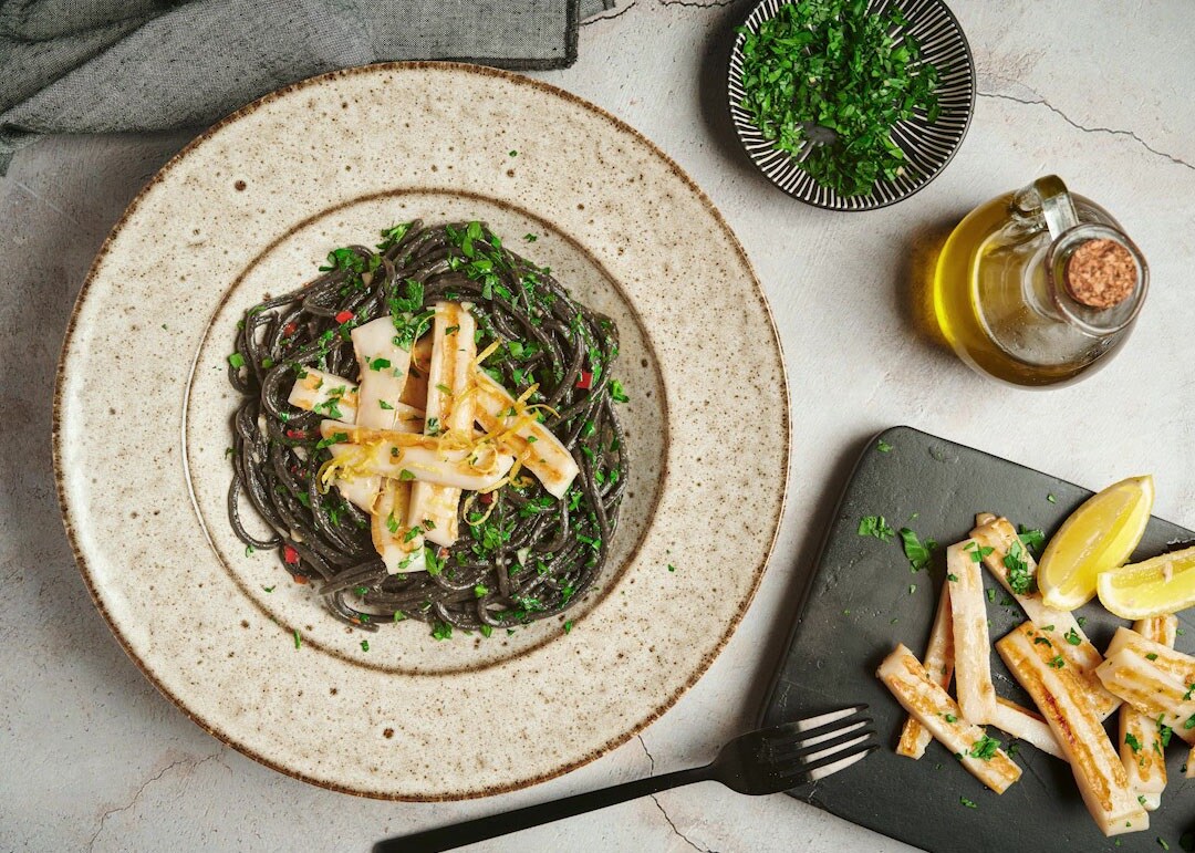 Нестандартно средиземноморско ястие, съчетаващо в себе си богатството на морските дарове с характерния италиански вкус на пастата