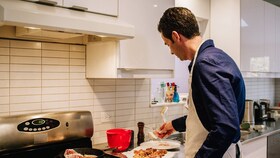 Измийте и подсушете марулята. С помощта на ренде отрежете една или две много тънки филийки лук (можете да използвате нож, ако режете внимателно). Добавете свежи подправки по ваш избор.
