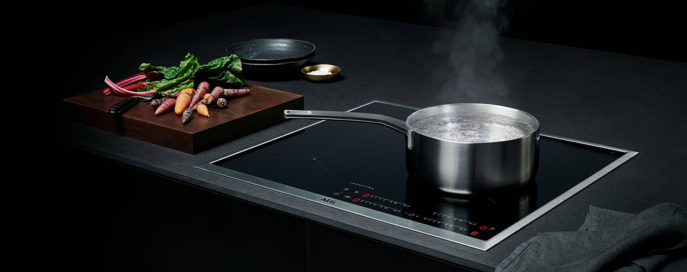 Нашите индукционни плотове се предлагат в размери 60, 68, 80 и 90 см, с елегантен и компактен дизайн, който пести място. Благодарение на тънката им конструкция, те се вписват лесно дори в най-плоските кухненски плотове – без необходимост от предни или задни вентилационни отвори.